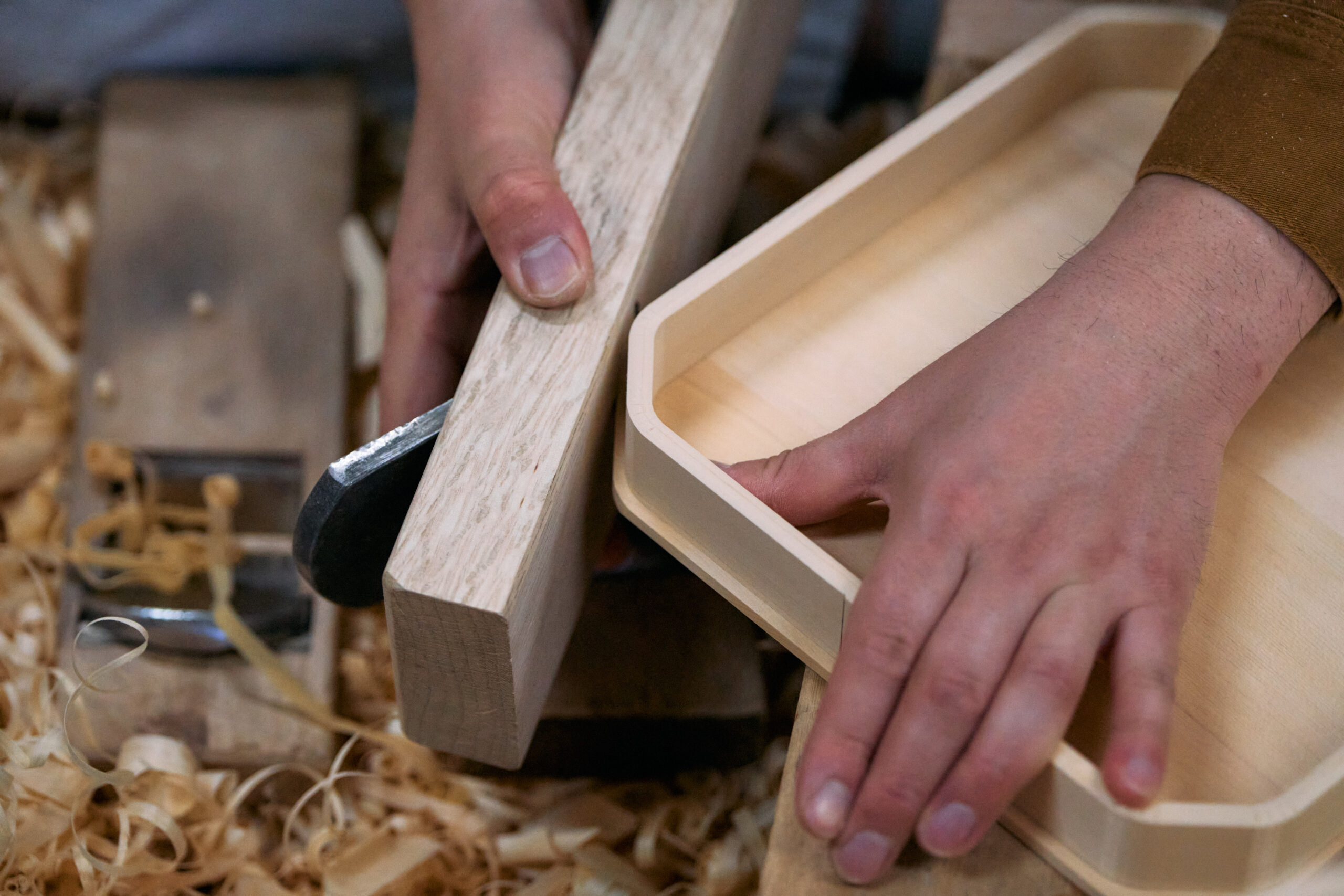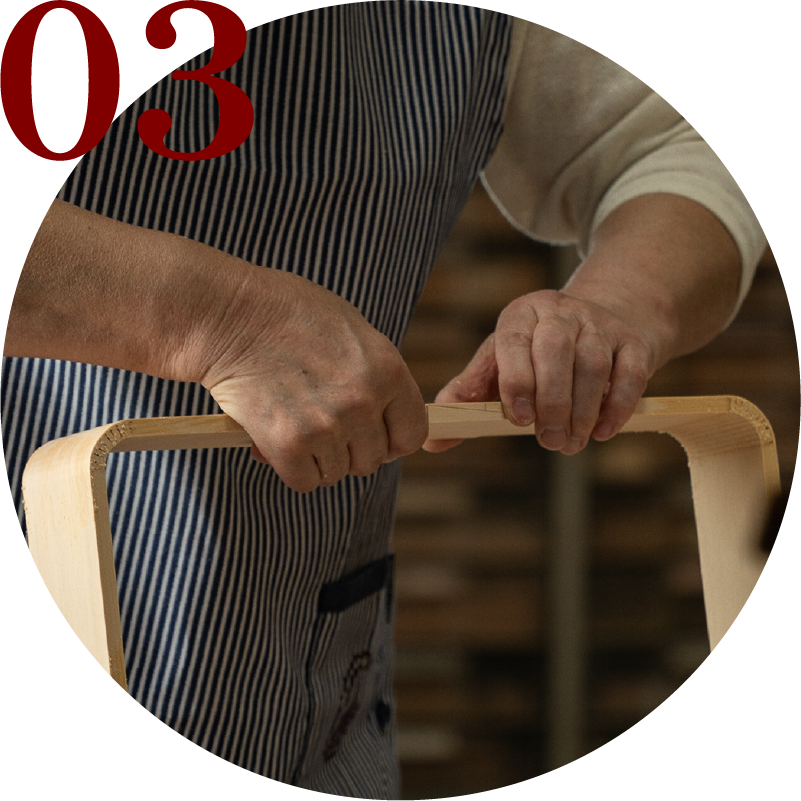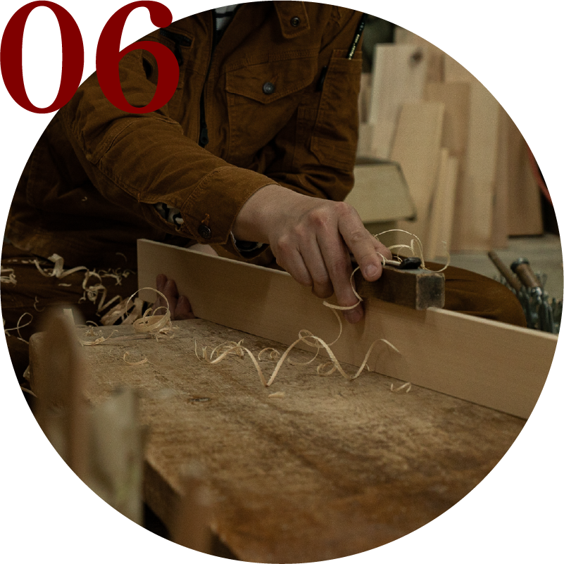 機械で荒仕上げをしたあと、職⼈が⼿仕事でカンナ仕上げをします。